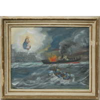 1151Ignoto, Ex-voto a tempera su carta (cm 39x49) iscritto…Valutazione € 80 - 100Aggiudicato € 130