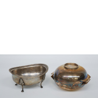 1699Lotto composto da un centro tavola con coperchio, tre…Valutazione € 80 - 100Aggiudicato € 100