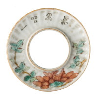 1796Piccola alzata in porcellana, forata al centro e decorata…Valutazione € 30 - 40Aggiudicato € 20