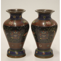 1448Coppia di vasi in metallo cloisonne a fondo blu,…Valutazione € 140 - 150Aggiudicato € 110