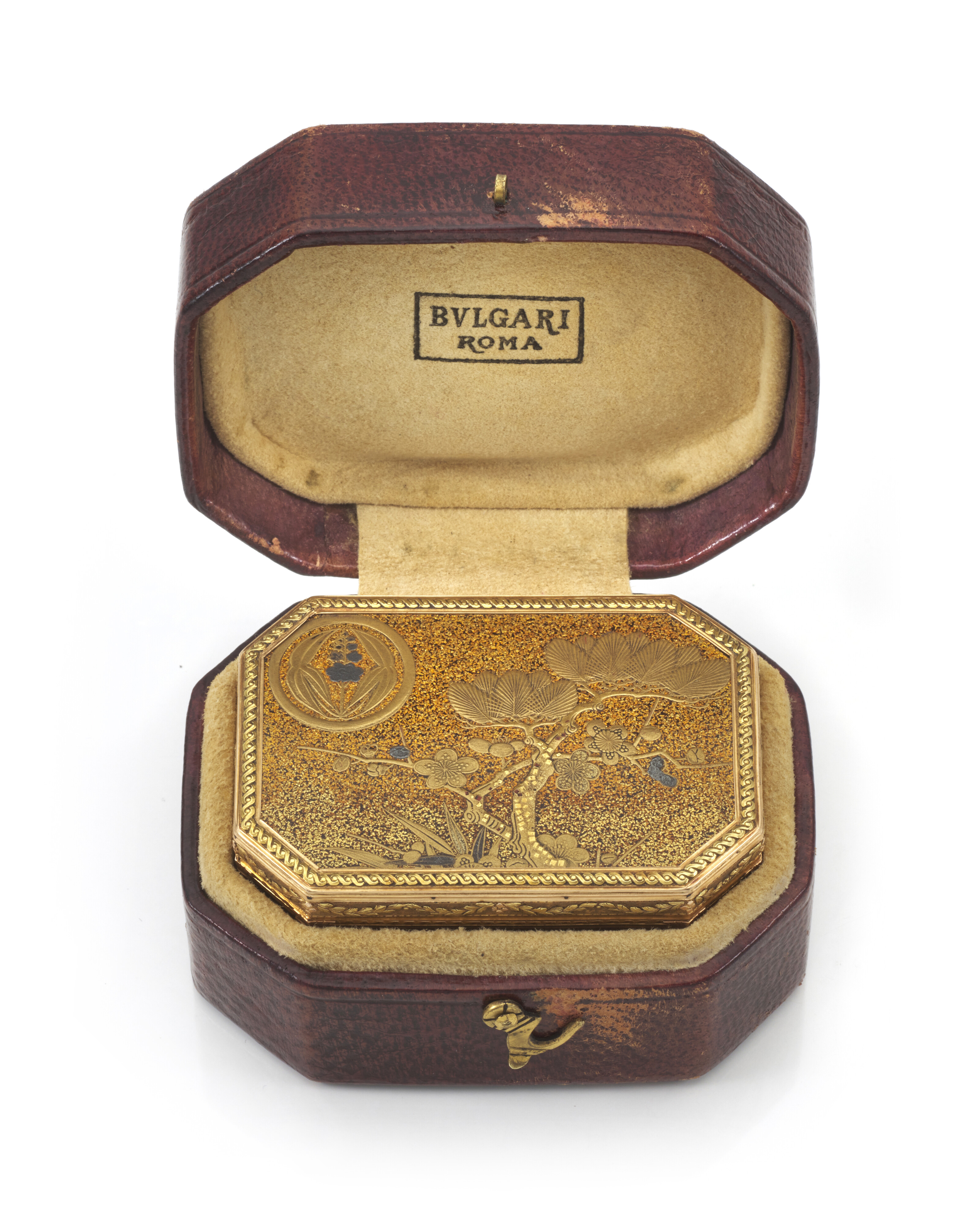 Barthélémy Pilleux, Parigi, 1779. Snuff box "à cage" in oro a tre colori e lacca giapponese.