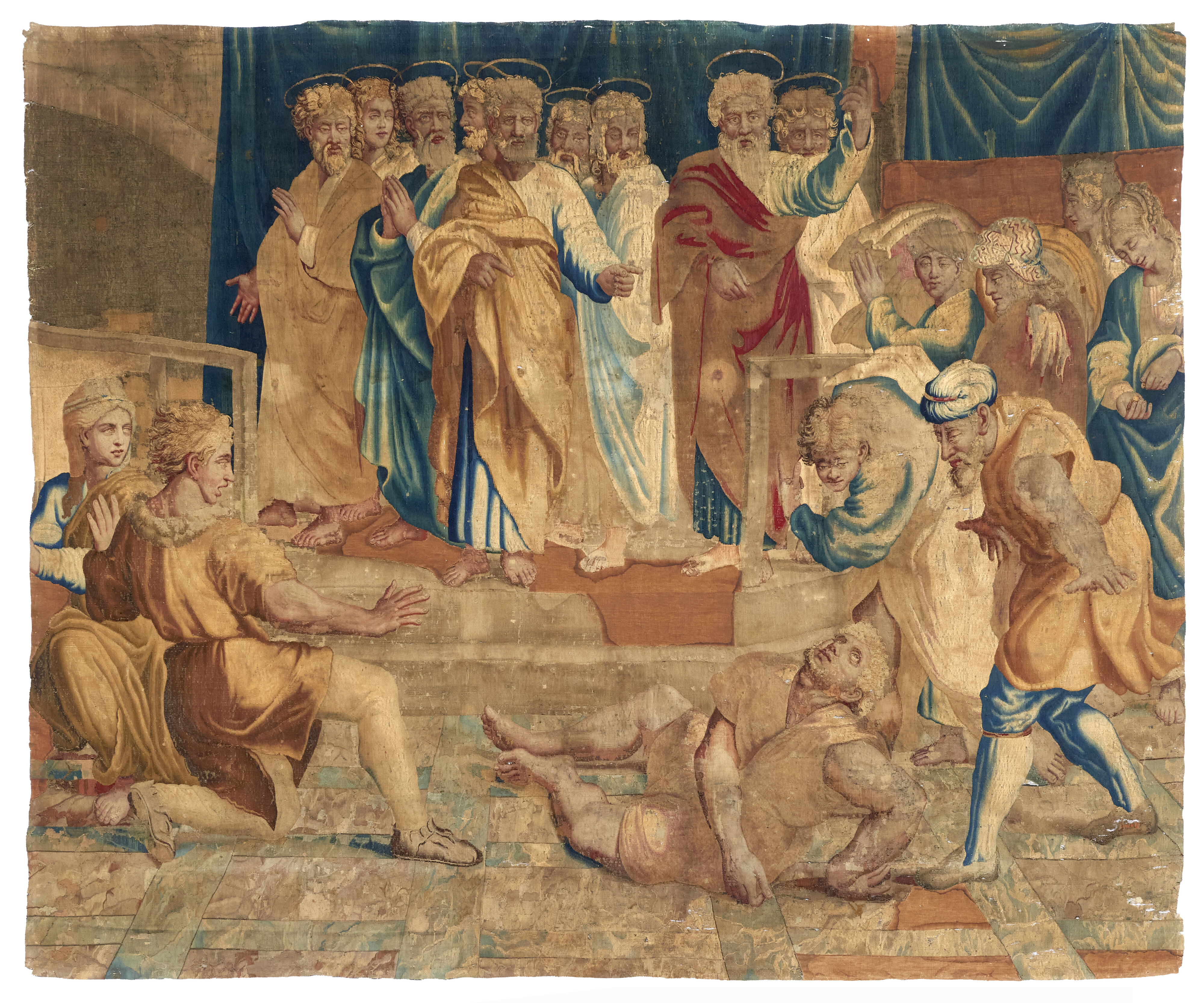 Manifattura del XVI secolo. Frammento di arazzo raffigurante la Morte di Anania, tratto da un cartone di Raffaello Sanzio (1483-1520).