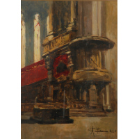 "Interno di basilica" olio su compensato (cm. 41x33,5) Firmato…
