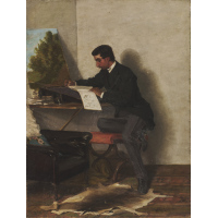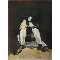 (Attr.)"La pittrice" acquerello su carta (mm 250x180) Al retro:…