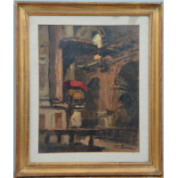 (Attribuito) "La sacrestia" olio su compensato (cm 32x40) In…